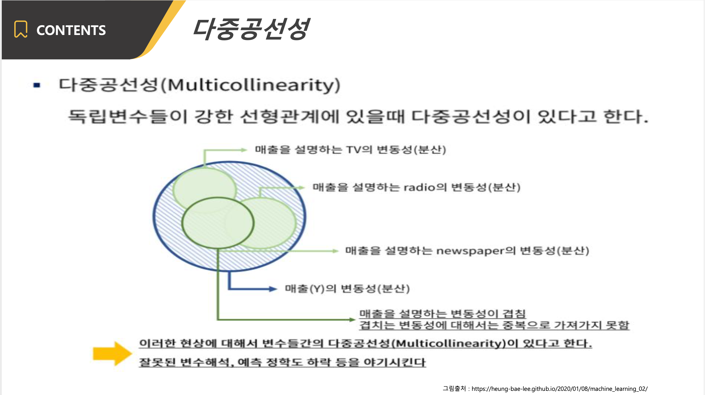다중 선형 회귀분석은 '변수가 여러개라는 점"에서 단순 선형 회귀와 구별됩니다.